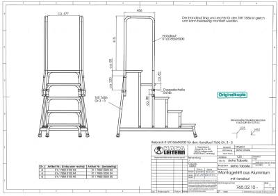 Wird der Tritt mit einem Handlauf verkauft, hat er die Verkaufsnummern 7656010003-05