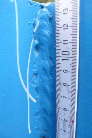 Bild 4: Sichtprüfung während des Schweißens, Riss in Zwischenlage