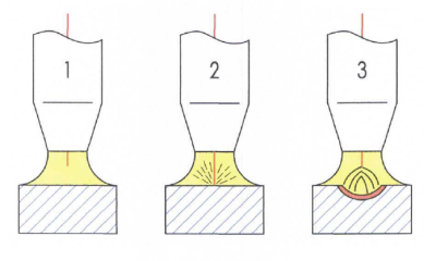 - Bild 3: Die Schmelzkugel berührt das Schmelzbad und verursacht einen Kurzschluss.