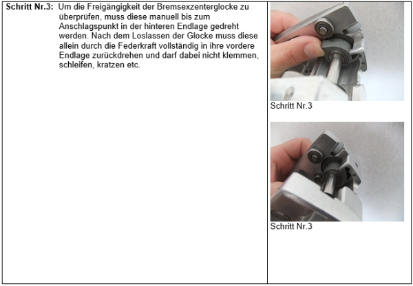 - Überprüfung der Freigängigkeit der Fliehkrafbremswellenlagerung und der Bremsexzenterglocke