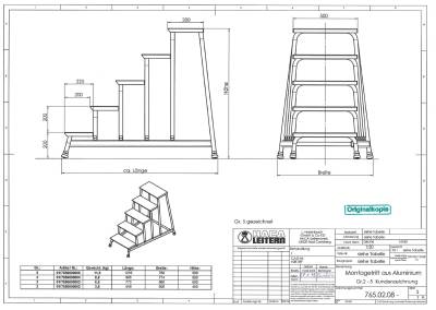 Auf dieser Zeichnung muss auch die Standhöhe und Leiterlänge angegeben werden!
