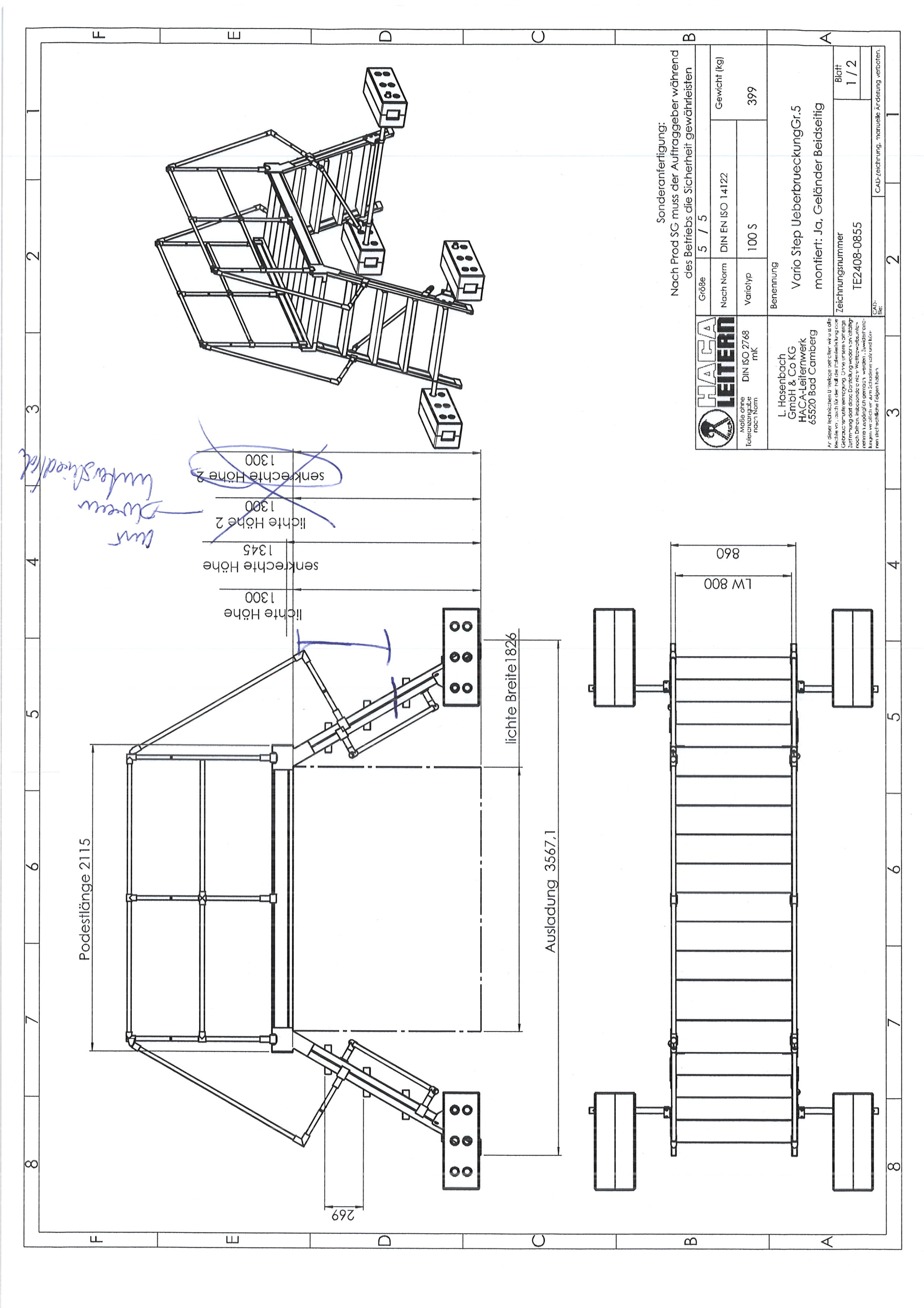 Zeichnung mit Vermerk versehen, dass das Geländer und Ballastierung sich im Auftragsfall noch verändern können"