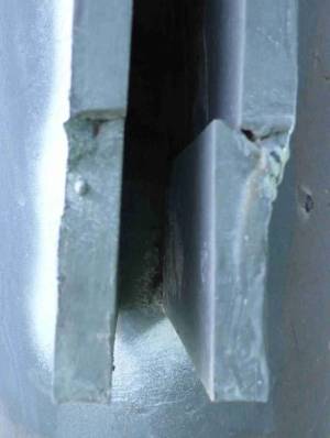 Beispielhaft ist eine mangelhafte, gerissene Zwischenlage einer Schweißnaht in Bild 4 dargestellt.