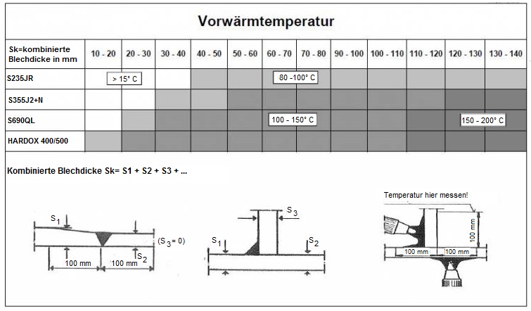 Die Höhe der Vorwärmtemperatur ist abhängig von der Wanddicke des Grundmaterials bzw. vom C- Gehalt des Grundwerkstoffes.